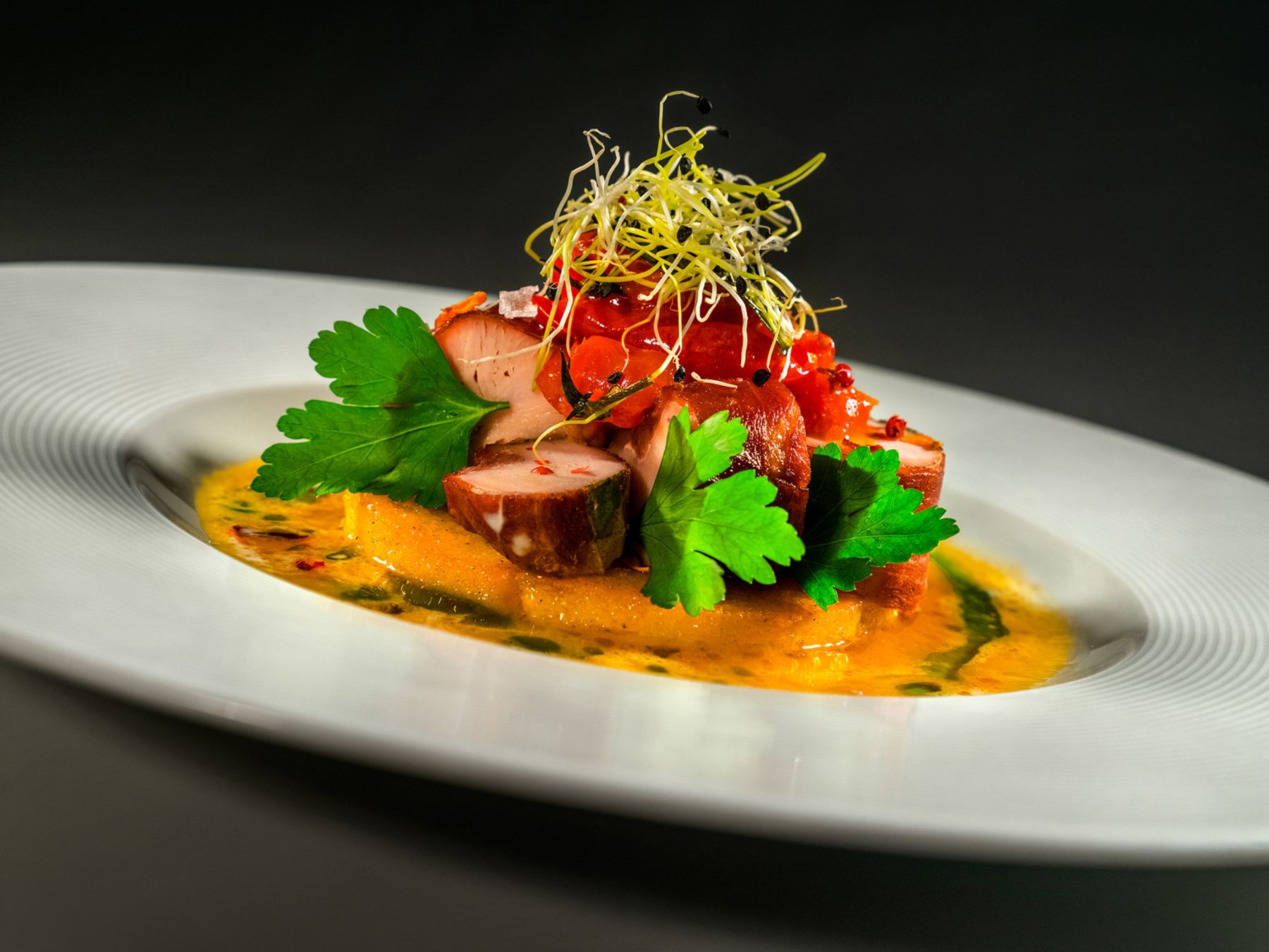 Unser Konzept ist einfach: Die traditionelle tschechische Küche zu einem modernen kulinarischen Erlebnis zu erheben. Wir glauben an die Kraft lokaler Zutaten, die bei uns mit dem Können von Jan Gajdoš, einem Chefkoch mit Michelin-Erfahrung, harmoniert und den Gerichten mit seinem Team neues Leben einhaucht. Sie können ein elegantes Ambiente mit einem Hauch der Ersten Republik und erstklassigen Service erwarten, der Ihr Gourmet-Erlebnis noch verstärken wird.