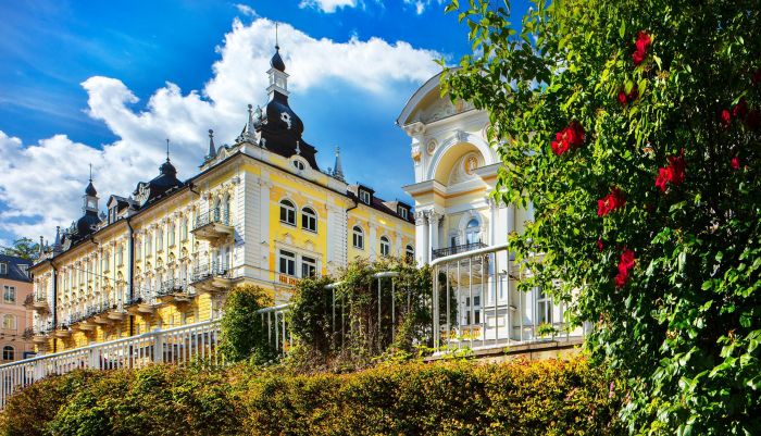 Während einige Gäste von Ihren Fenstern und Balkons aus die Atmosphäre der Kolonnade bewundern können, genießen die anderen die Aussicht in den Wald – Marienbad ist Bestandteil des Landschaftsschutparks Slavkovský les/Kaiserwald. Das Hotel Reitenberger befindet sich im Herzen des Kurorts, der hintere Teil des Gebäudes schließt jedoch an die unversehrte Natur an. Ein vollkommener Ort für Ihren Urlaub
