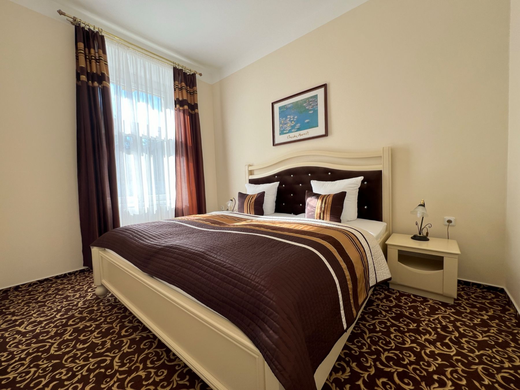 Apartment Skalník with an area of 37 m² offers cozy accommodation with a beautiful view of the main spa colonnade. It consists of two rooms – a living room with a sofa and a bedroom with a double bed. There is also a spacious bathroom with a shower. Apartment Skalník is an ideal choice for guests looking for comfort and a beautiful view in the heart of the spa environment.